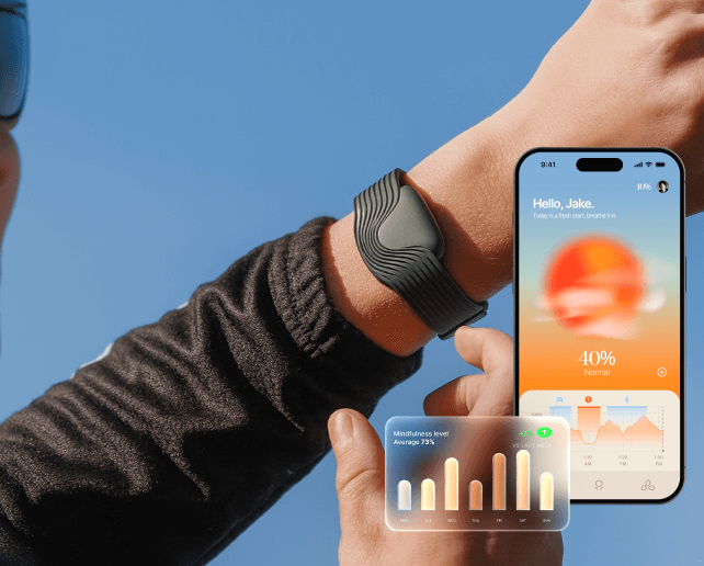 Surya acts as your personal mindfulness coach, analyzing your mindfulness level 24/7 and providing subtle feedback that helps you stay calm, resilient, and deeply present — no matter what life throws at you.